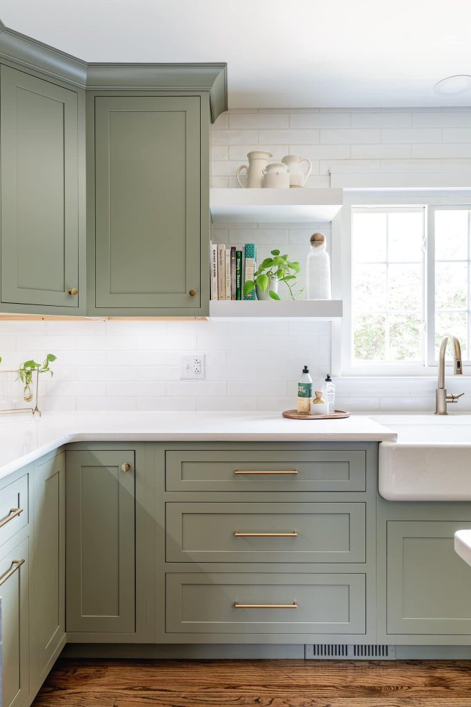 Sprinkle in framed art, a small plant, or a favorite cookbook to keep your shelves from feeling too staged. These details soften the look and make your kitchen feel lived-in.